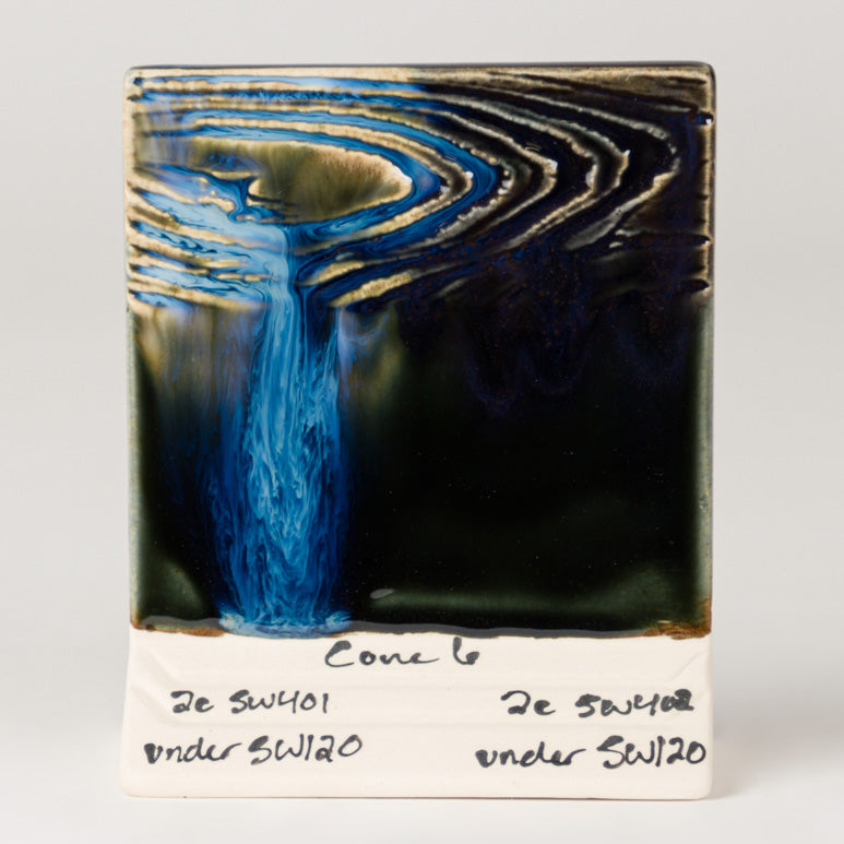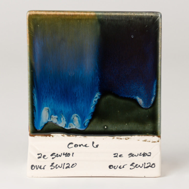 Stoneware classic glazes offer the depth, sophistication and reliability to artists working from mid-range to high-fire temperatures. Many glazes will break over textures, revealing secondary colors and shades. Used alone, stoneware glazes produce beautiful color variations. One coat will allow the clay body to show through the glaze and two to three coats deeper the color. The choice of clay body, thickness of glaze application, firing process and temperature will affect the fired finish.