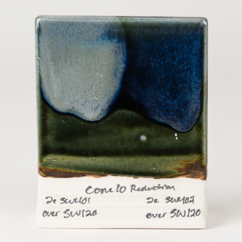additional coats are applied the green hues will deepen and develop a bluish tint. Very nice on white stoneware and porcelain.