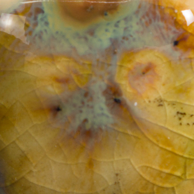 Cone 6 oxidation: Base glaze fades – Green crystals change to brown; remaining crystals fade and melt. Enhanced mobility. Surface issues may occur.