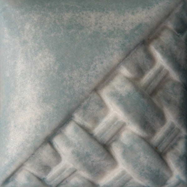 Cone 6: Storm Gray is designed to produce a medium gray to white variegation depending on application. One coat will produce a medium gray matte finish with little white variegation. Subsequent coats build a white variegation, muting the medium gray.